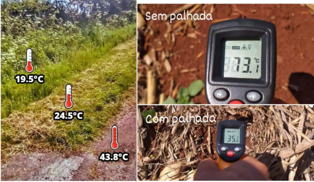 O clima brasileiro, predominantemente tropical e subtropical, cuja temperatura, em muitos lugares, chega a mais de 40ºC no verão, requer a ação de diminuição do calor junto ao solo. As plantas também precisam da proteção de coberturas para evitar que a perda de água por evaporação seja muito grande. Nos próximos anos, a água potável será cada vez mais cara e escassa, por isso devemos pensar em alternativas de economia do consumo, tais como, diversificação das espécies de plantas e de coberturas. A água de chuvas ou das regas percola no perfil do solo em direção a camadas mais profundas: uma parte fica no solo; a outra é utilizada pelas plantas nos seus processos biológicos; e o restante é evaporado. Em solos arenosos, o calor e a facilidade da água na penetração são maiores que em solos argilosos. Além disso, quando não tem nenhuma cobertura viva ou inerte, o solo arenoso é também o tipo que mais aumenta a temperatura: as plantas ficam com pouca água, murcham durante o dia e com a noite retornam ao estado normal. Se não houver chuvas ou regas, o murchamento é permanente e a planta morre. Por isso, com solo desnudo, será necessária maior quantidade de água para atender as exigências das plantas cultivadas.